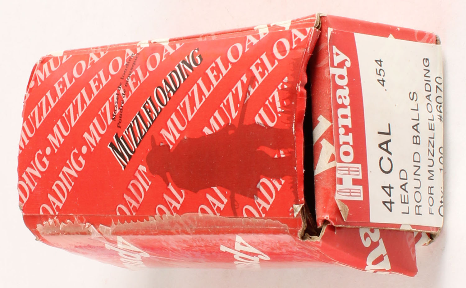 Hornady, .44 Cal., Lead Round Balls, .454'' Dia., Appears Full, 1pc. Red & white box, box is solid with excellent color, label is intact, bullets are very good. Grade: Very Good ++ - Value: 10 to 50