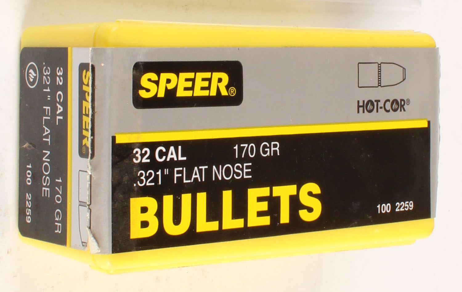 Speer, 32 Cal., 170 Grs. .321'' Flat Nose, Full, 1pc., multi-colored box, box is solid with great colors. Grade: Excellent + - Value: 10 to 40