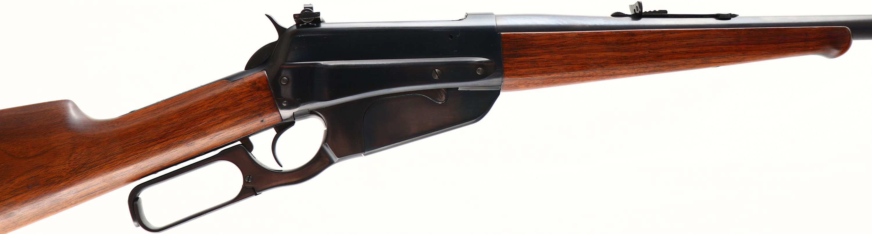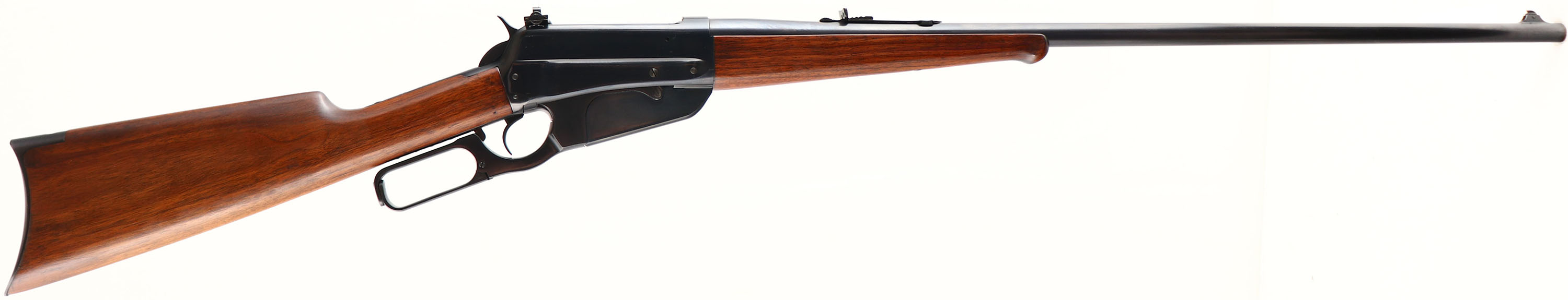 SUPERB Winchester Model 1895, CAL: marked 303 British, MFG: 1924, SN: 419874, Lever Action Rifle, 28'' Tapered round barrel. The factory straight grip wood stock & schnabel forend, with the ebony inlay, are excellent. The finish is excellent, with very few tiny handling marks. The original metal blue finish rates 99% on the barrel, 98% on the receiver lever & box mag. Bore is excellent & bright. The rifle is fitted with a Climbing Lyman #21 receiver sight, factory adjustable rear sight & a small blade front sight. Buttstock carries a crescent metal buttplate. An overall fantastic, extremely high original condition & very collectible example. This would be very difficult to improve upon. FFL or C&R Req - Value: 5000 to 8000