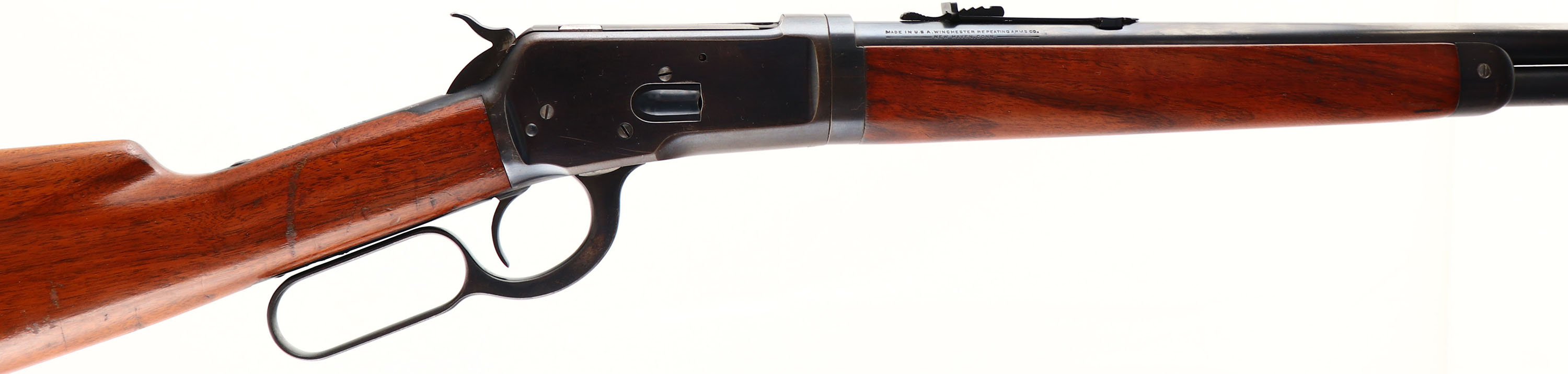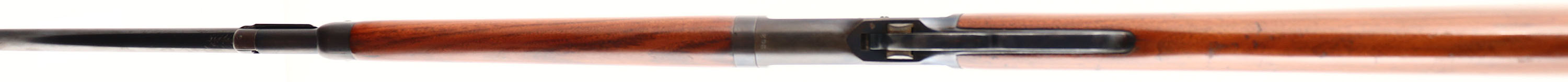 RARE Winchester, Model 53 TAKE-DOWN, CAL: 44 WCF, MFG: 1924, SN: 362, Lever Action Rifle, 22'' Tapered round barrel. Half mag. In 1924, Winchester introduced the Model 53 lever-action rifle as a modernized version of the model 1892. Production lasted just 8 yrs until 1932, with a very limited production of approximately 25,000. This rifle is a 1st YEAR PRODUCTION, early 3 digit SN. The original straight grip wood stocks are excellent, with minor surface scrapes, contusions & scratches. There is some flaking of the finish on the buttstock along the edge of the buttplate. It appears the original finish on the forend was either touched-up or removed & very nicely refinished, but without wood loss & matches the stock. The metal blue finish on the barrel rates 95%, with small scrapes at the area of the takedown lever. The receiver blue rates 75%, with most thinning wear at the handling points of the belly, which is toning to a light brown/gun metal grey patina. Bore is excellent & bright, with proud rifling. The barrel holds a flat top adjustable rear sight & low profile front sight. Buttstock carries a grooved metal buttplate. A very nice example of a first year, take-down 53 in the very desirable 44 WCF. FFL or C&R Req. - Value: 5000 to 9000