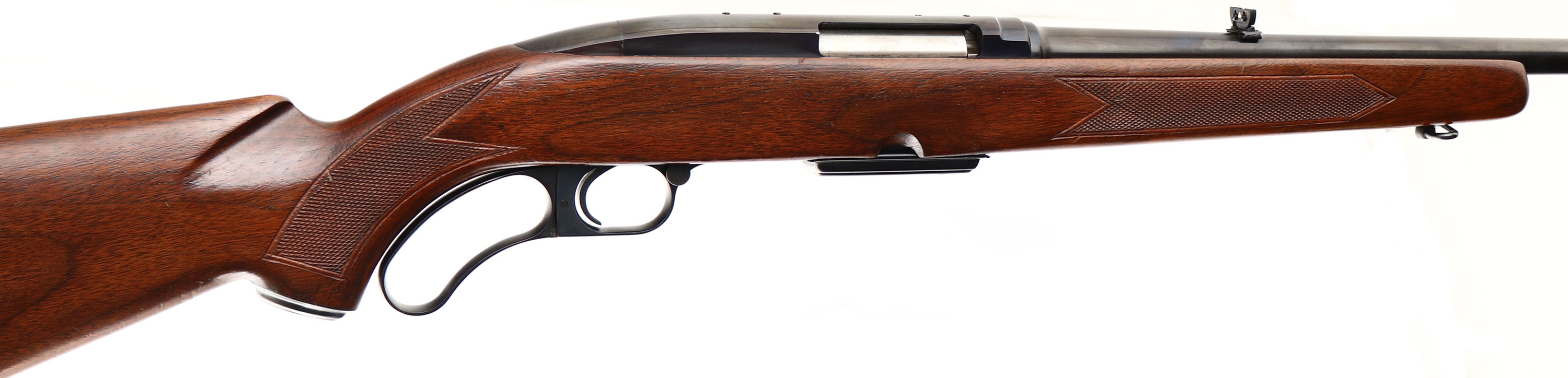 Winchester Model 88, CAL: 243 WIN, MFG: 1962, SN: 128803A, Lever Action Rifle, 22'' barrel. Pre-64. The original checkered & capped pistol grip wood stock is excellent. It displays some minor handling marks to the excellent original finish, which is only thinning a bit at the front of the pistol grip. The original metal blue finish rates 98% on barrel, 95% on receiver. Bore is excellent. The barrel holds a flip-up rear sight & a hooded ramp front sight. Stock carries a the original checkered buttplate. Factory sling swivels. Excellent overall & very collectible in this condition as a pre-64 variation. FFL or C&R Req - Value: 1500 to 2500