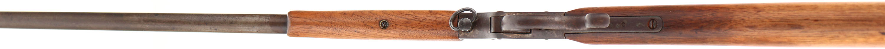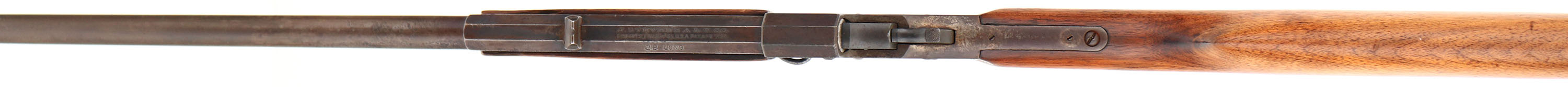 J. Stevens A. & T. Co., Favorite, 32 LONG Cal., SN: B489, MFG. 1894-32, Lever falling block take-down rifle, 22'' Octagon to round barrel, The original wood stocks are good, having been sanded & refinished. There remains a few minor handling marks or contusions. The forend tip has a missing sliver of wood to the right upper edge. The metal surfaces are a mix of gun metal gray, brown patina & applied brown finish over cleaned pitting. Barrel carries a fixed rear sight & a Rocky Mountain blade front sight. Bore is good, with spotty roughness amongst solid rifling. Black plastic ''Stevens Favorite'' buttplate, with a broken chip at the top. Tight mechanism. FFL or C&R Req. - Value: 150 to 300