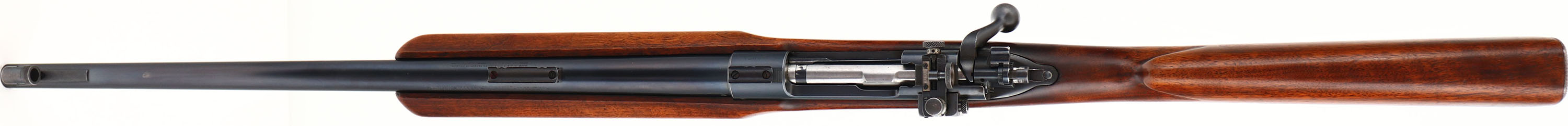 RARE Winchester Model 54 TARGET RIFLE, CAL: .30 GOV'T'06., MFG: 1934, SN: 41097A, Bolt Action Rifle, 24'' heavy round barrel. The model 54 was the first successful civilian bolt action for Winchester. They are fairly rare model with total production of just over 50,000 in all variations from 1925 to 36. The Target Rifle is one of the rarest model 54 variations, only surpassed by the National Match Rifles. This particular rifle is listed by SN on page 146 of Dave Bichest's Model 54 book, ''Winchester Model 54 Bolt Action Rifle 1925-1936''. The original Target flat pistol grip wood stock on this example is excellent, with few minor contusions or light scratches to what appears to be the original finish. Fitted with a hand stop on the belly of the forend. The metal blue finish appear original & rates 98%, although the SN appears thinly stamped. Bore is excellent. The rifle is fitted with an adjustable Lyman 48W receiver sight & a Lyman silhouette front sight. Receiver & barrel carry factory scope blocks. Buttstock carries the original checkered metal buttplate. Factory sling loops. An excellent example of a rare bench Winchester bolt action. FFL or C&R Req - Value: 2500 to 4500