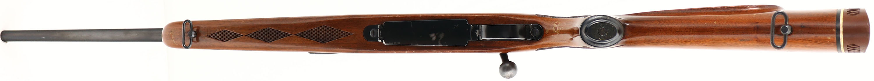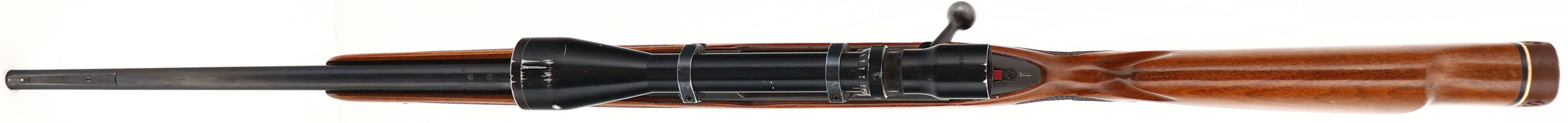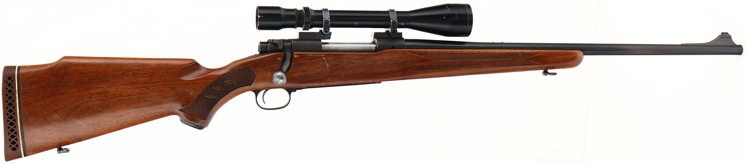 Winchester Model 70, CAL: 30-06, MFG: 1964, SN: 700423, Bolt Action Rifle, 22'' barrel. The checkered, cheeked, & capped pistol grip Monte Carlo wood stock is very good, displaying several finish level scrapes to the original finish, along with other small handling marks The checkering pattern has the three diamonds in the pistol grip. The metal blue finish rates 95% on the barrel, 90% on the receiver, & 80% on the floorplate which shows some spotty loss. Bore is excellent. Fitted with a Bausch & Lomb Balvar 8 2.5-8 scope on Leupold blocks & rings. The barrel carries screw filled rear sight holes & tall ramp front sight. Buttstock carries a Pachmayr White Line ventilated brown recoil pad. Sling swivels. Matching SN on jeweled bolt. A very nice vintage hunting rifle in the classic 30-06 caliber. FFL or C&R Req - Value: 800 to 1200