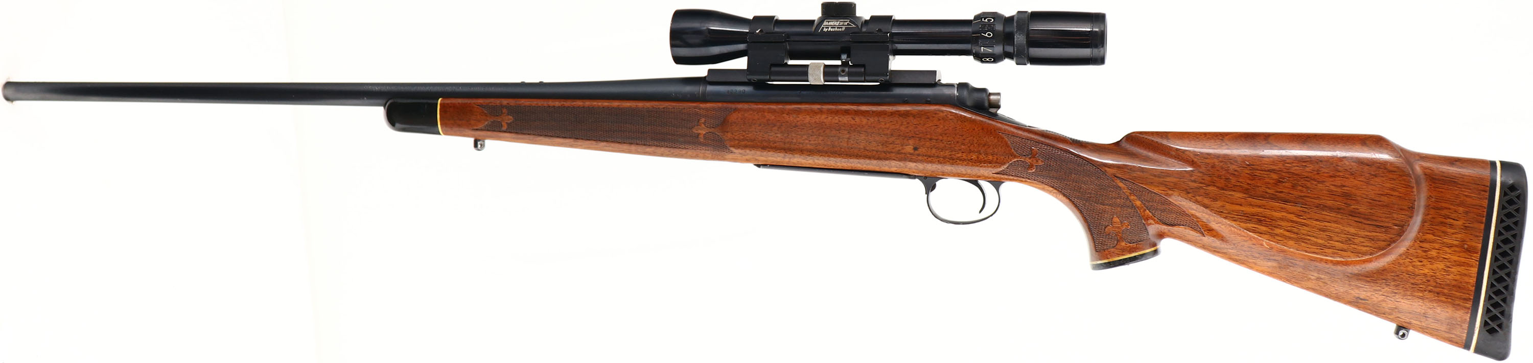 Remington, Model 700 BDL, CAL: 7mm REM MAG, MFG:1963, SN: 42290, Bolt Action Rifle, 23 3/4'' Tapered barrel. The original cheeked, checkered & flat pistol grip Monte Carlo wood stock is excellent, but with several minor handling marks, scratches & contusions to the thinning original high gloss finish. There is some finish flaking to the pistol grip cap. The stock carries an ebony toned forend tip & pistol grip cap. The original metal blue/gray finish rates 90% overall. Bore is excellent. The receiver holds a Bushnell Banner II 3x-9x scope on Redfield block, while the barrel is tapped with factory sight provisions for rear & front sights, screw filled rear, open holes at front sight. Stock carries a Remington ventilated recoil pad. Sling studs. FFL or C&R Req. - Value: 400 to 700