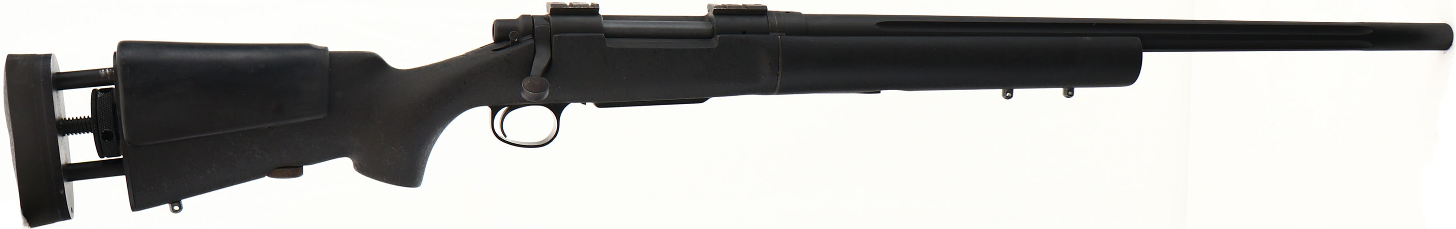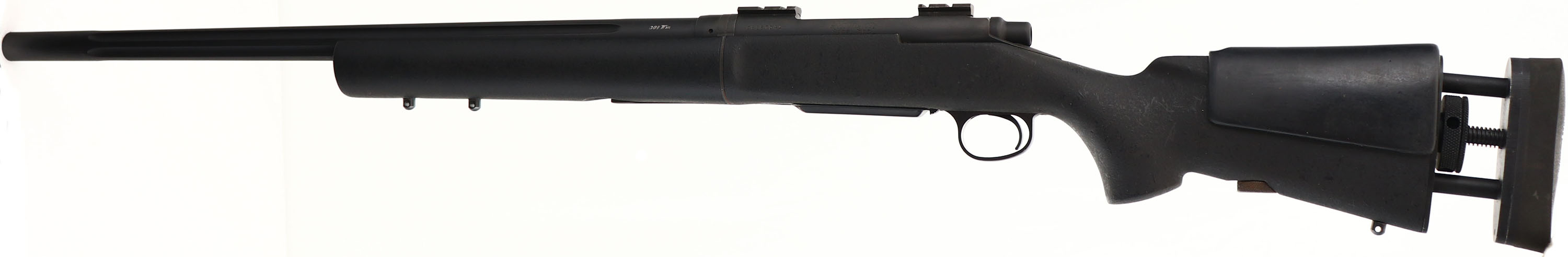 CASED & CUSTOM H-S Precision Inc., Model TTD-Tactical Takedown Rifle Remington 700, Dual caliber combo, CALIBERS: 308 WIN & 300 WIN MAG, MFG: Modern, SN: C6257041, Bolt Action Rifle, 23 1/2'' Fluted barrels. The Takedown series in H-S Precisions Pro-Series lineup are some of the most versatile & accurate systems on the market with patented technology. The Pro-Series TTD provides a unique solution for any tactical situation. With patented interrupted thread design, the TTD allows the tool-less assembly of multiple barrels in seconds. The TTD when disassembled fits into the much smaller case for ease of transportation & discretion. This rifle featured H-S Precisions legendary accuracy guarantee with a repeatability guarantee of 1" MOA. Highlighted Features: H-S Precision Pro-Series action with patented interrupted thread design. H-S Precision cut rifled, match-grade stainless steel barrel (tactical contour; fluted). Pro-Series synthetic stock with full-length aluminum bedding block. H-S Precision detachable magazine feeding system (center feed design). The LOP & cheek adjustable factory synthetic stock is excellent, with light rubs & usage marks. Each barrel carries its own forend. The factory matte black metal finish rates 90% overall. Barrels are engraved ''H-S Precision Inc.'', ''308 Win'' & ''300 Win Mag'' respectively. Bores are excellent. The receiver carries picatinny scope blocks for future scope mounting. No open sight provisions. Solid rubber recoil pad. Sling studs & bipod mounting stud. Comes in the factory case, with the second barrel/forend, 2nd bolt, bipod, 4 extra magazines, parts for scopes (which are not included) & various tools & accessories. Factory lists base price for their TTD rifles starting at $8200, while this rifle comes with the second caliber barrel / bolt/ forend combo, upgrades & accessories. A perfect rifle for small game or varmint hunting. FFL Req. - Value: 2000 to 10000
