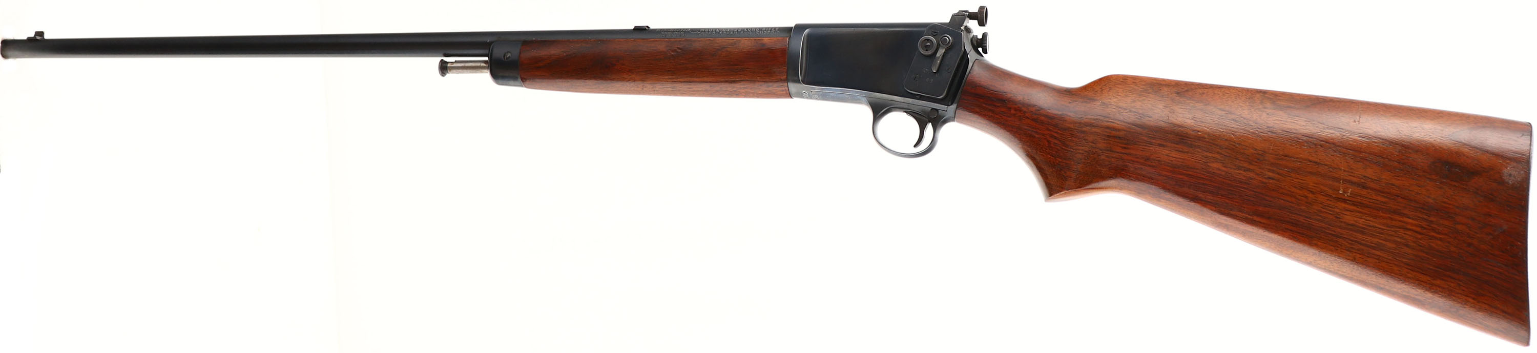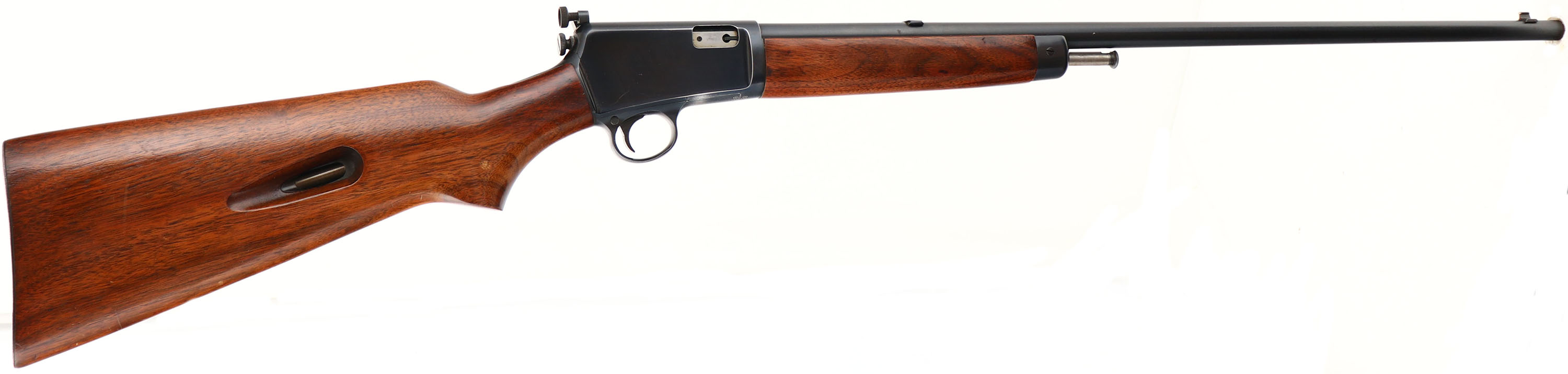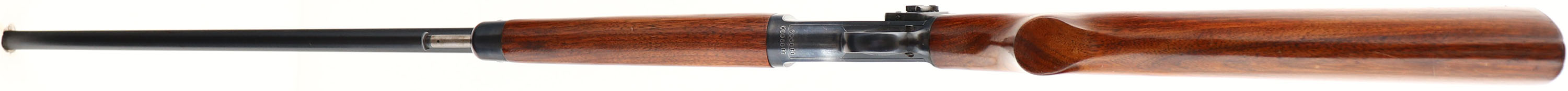 Winchester, Model 63, .22 LONG RIFLE SUPERSPEED & SUPER-X Cal., MFG. 1953, SN: 118965, Semi-Auto Action Rifle, 23 1/4'' Round barrel. The original flat pistol grip wood stocks are excellent, with the majority of the original finish. The stocks display several minor finish level scuffs, scrapes or contusions, with one small 1/4'' gouge on the right side of the pistol grip. The original metal blue finish rates 98% on barrel, 95% on the receiver. Bore is excellent. Rifle fitted with an adjustable Lyman 45 receiver sight, a blank filled rear dovetail & original front sight. Original metal buttplate. An original & high collectors condition rifle. FFL or C&R Req. - Value: 1000 to 2000