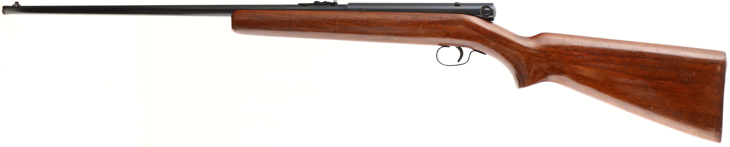 Winchester, Model 74, Marked .22 L. RIFLE Cal., MFG. 1942, SN: 116353, Semi-Auto Rifle, 24'' Tapered round barrel, The original flat pistol grip wood stock is very good & solid, with lots of minor scuffs, scrapes & scratches to the original finish. The factory metal blue finish rates 90% overall. Bore is excellent. Factory sights. Loads through mag tube located in the stock. An original Winchester semi-auto .22. FFL or C&R Req - Value: 250 to 500