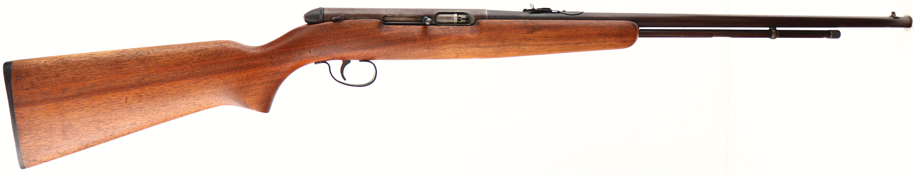 Remington Model 550-1, 22 SHORT, LONG or LONG RIFLE, MFG: 1950's, SN: NONE, Blowback Semi-Auto Rifle, 24'' round tapered barrel. Similar to the model 550 except with a single extractor rather than double extractor. The original flat pistol grip stock is very good, having the original finish stripped & reoiled, with multiple minor scrapes, scratches & contusions. The original metal blue finish has worn to a thinned brown patina & with some spots of corrosion. Standard rear & front sights. Bore is good & bright. The stock carries an original buttplate. FFL or C&R Req. - Value: 150 to 300