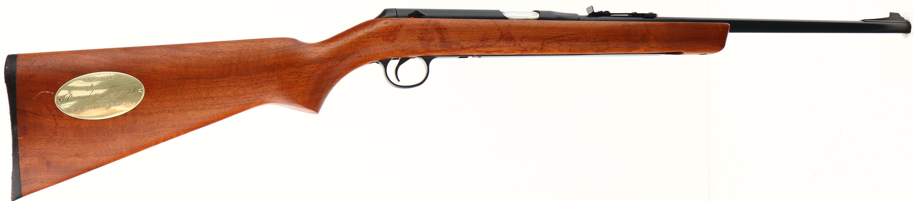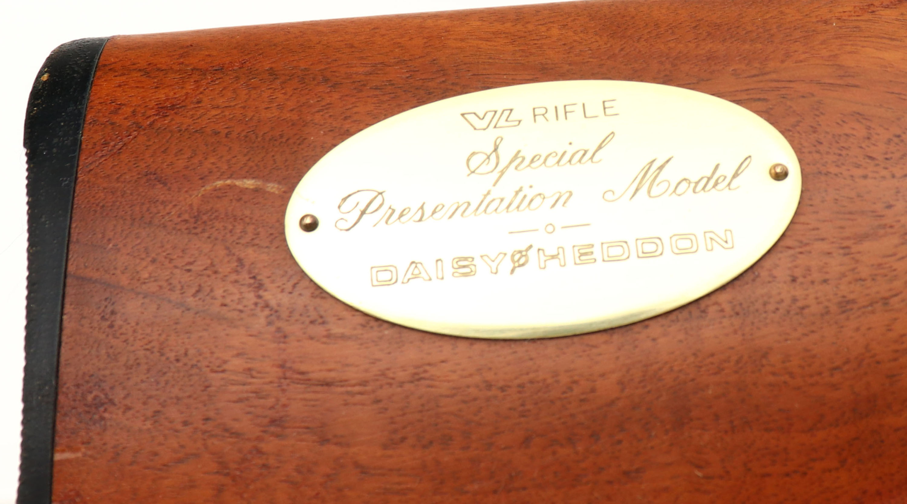 Daisy & Heddon, SPECIAL PRESENTATION MODEL VL Lever Pump Rifle, .22 Cal. Caseless VL Ammo, S/N: A010425, 18'' round barrel, This is a VL Collectors Kit only rifle, available by direct factory order. Unfortunately, the rifle has become separated from its original case & rest of the collectors kit it originally came with. The original wood stock is excellent, but does have a little bit of heat damage to the original varnish finish. The stock carries a gold tone medallion marked ''VL RIFLE SPECIAL PRESENTATION MODEL DAISY & HEDDON''. The original metal blue finish is excellent. Bore is excellent. All appears to function well as is looks to have been used very little. FFL Req. - Value: 300 to 500