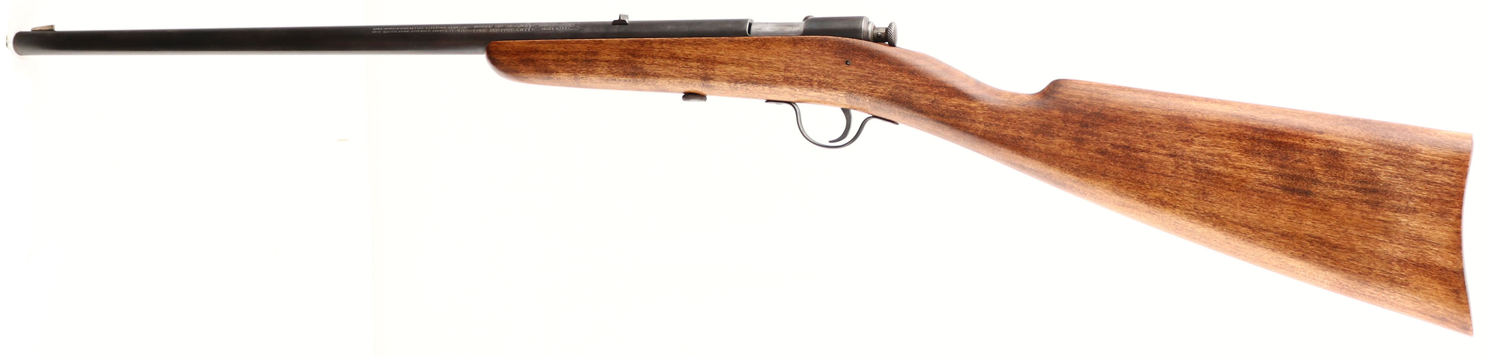 Winchester, Model 58, CAL: 22 S,L,LR, MFG: 1928-31, SN: NONE, Bolt Action Rifle, 18'' barrel. This is a fairly rare rifle as only 38,992 were produced during the four years of production. The straight grip wood stock is an excellent replacement, with virtually no handling marks to the finish. The metal blue finish has been refinished, with 85% coverage. Bore is excellent. Factory fixed sights. Produced without a buttplate. FFL or C&R Req. - Value: 200 to 400