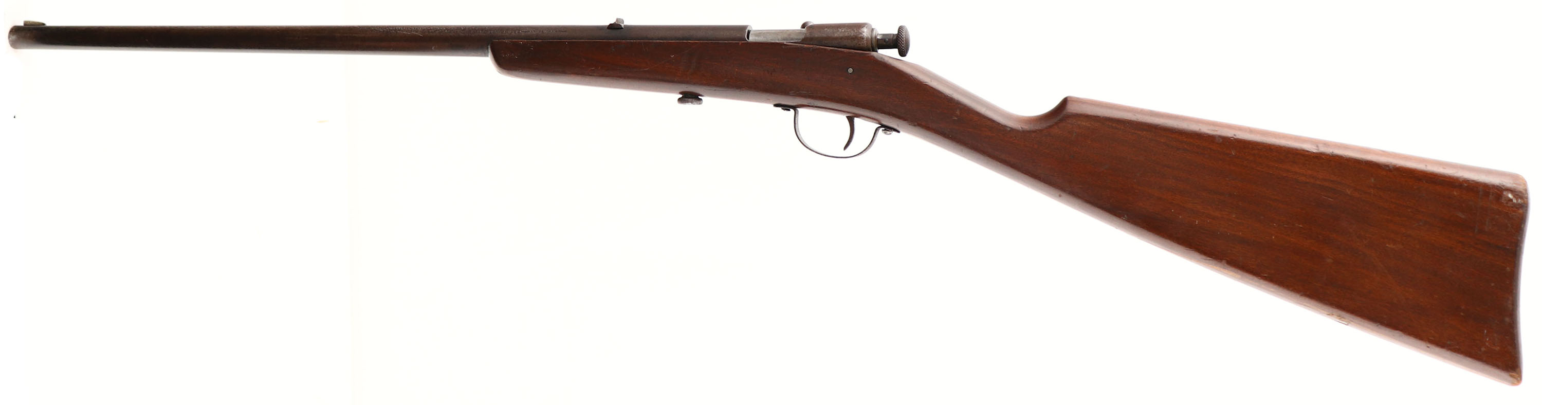 Winchester, Model 58, CAL: 22 S,L,LR, MFG: 1928-31, SN: NONE, Bolt Action Rifle, 18'' barrel. This is a fairly rare rifle as only 38,992 were produced during the four years of production. The original straight grip wood stock is very good, with several handling marks & contusions to the original finish. There is a 4.5'' stress crack on the right side of the forend above the retention screw. The metal blue finish has worn to a mix of gun metal gray & a brown patina. Bore is good. Factory fixed sights. Produced without a buttplate. FFL or C&R Req. - Value: 120 to 250
