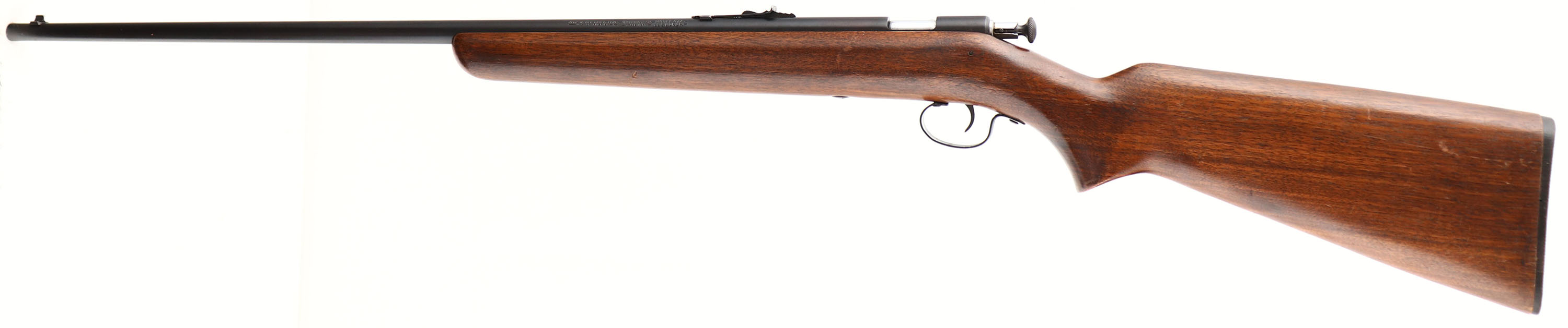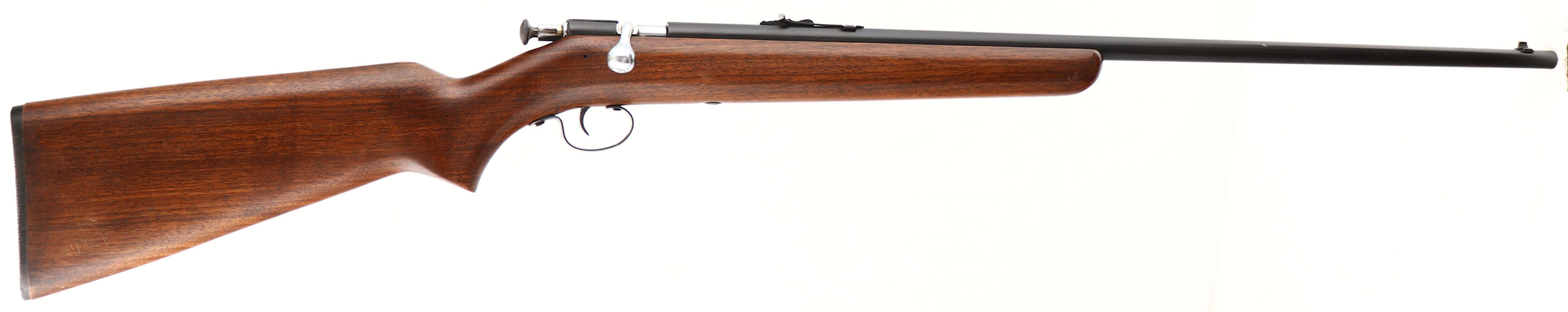 Winchester, Model 67A Sporting, CAL: 22 S,L,LR, MFG: 1934-63, SN: NONE, Bolt Action Rifle, 27 1/8'' barrel. The original flat pistol grip stock is excellent, with very minor contusions, scrapes & scratches to the original finish. The metal blue finish on the barrel/receiver rates 98%. Bore is excellent. Standard adjustable rear sight & blade front sight. Winchester checkered plastic buttplate. FFL or C&R Req. - Value: 300 to 600
