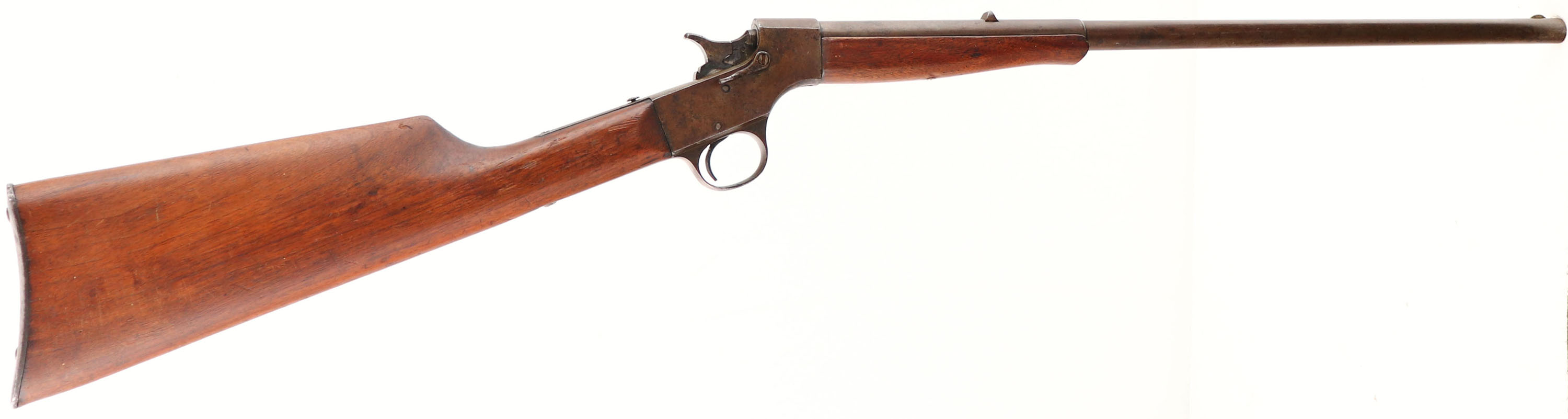 Marvel (Stevens), Model: The .22 Marvel, CAL: 22 LR, MFG: N/A, SN: T283, Bolt Action Single Shot Rifle, 20'' barrel. The straight grip wood stocks are very good & solid. There are a few minor edge chips where the buttplate meets the stock, along with minor contusions & scrapes to the finish. The metal blue finish has worn to a mix of gun metal gray & a thin, spotty brown patina. Bore is poor, dark & pitted. Fixed rear sight & blade front sight. Smooth metal buttplate. FFL or C&R Req. - Value: 100 to 250