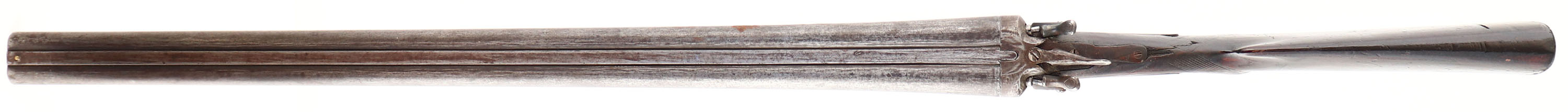 Western Arms Co., SxS Hammer Shotgun, CAL: 12GA, MFG: N/A, SN: 6517, Break Action SxS Shotgun, 30'' barrels. The checkered round knob wood stocks are fair. There is a edge chip/crack at the wrist, the forend has a crack/break. There are multiple contusions & scrapes throughout, with a thick layer of added varnish. The metal finish has worn to metal gray & toned to a brown patina, with consistent spotting throughout. Bores are good, with light scarring & roughness. Single front bead sight. Grooved metal buttplate. FFL or C&R Req. - Value: 100 to 200