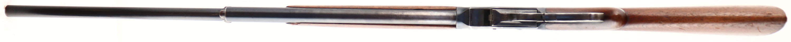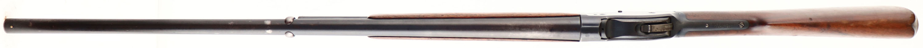 Winchester, Model 1901, CAL: 10GA, MFG: 1905, SN: 71853, Lever Action Rifle, Choke: Full, 32'' barrel. The original round knob wood stocks are very good & solid. There is a edge chip at the heel & one on the front right corner edge of the right front grip panel. There are other contusions, dings & scrapes, with protective oils added over time. The metal blue finish on the barrel rates 70%, with areas worn to metal gray & toned to a brown patina. The receiver rates 95%, with edge wear & spotting toned to a brown patina. The tube rates 60%, with areas worn to metal gray & toned to a brown patina. There is intermittent rust spotting throughout the metal surfaces, toned to a brown patina. Bore is fair, dark, rough & pitted. The barrel holds a single front bead. Checkered metal buttplate. FFL or C&R Req. - Value: 1500 to 2500
