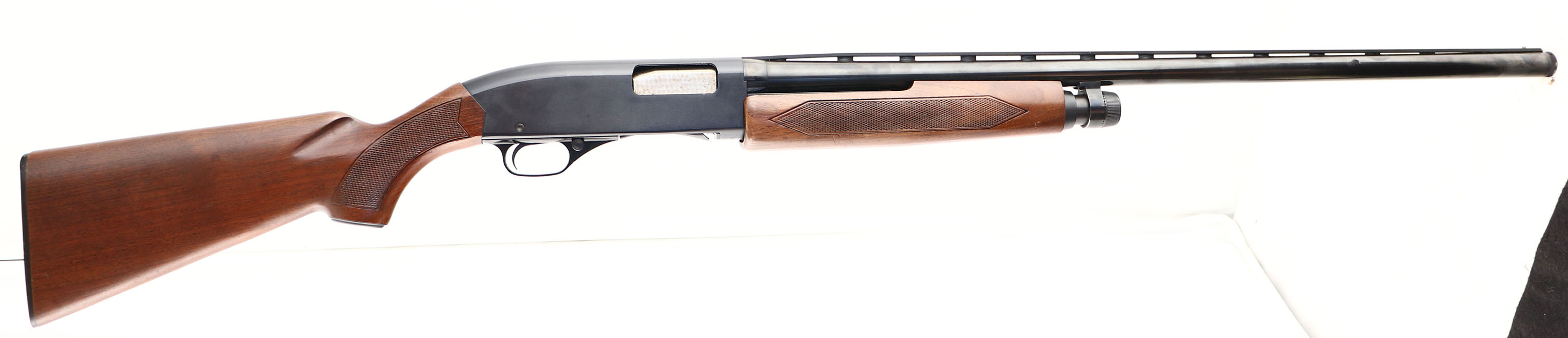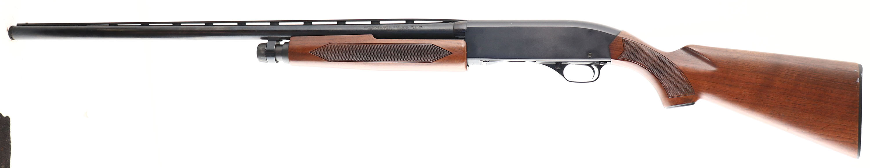 Winchester, Model 1200, CAL: 12 GA, MFG: 1964-82, SN: L860476, Pump Action Shotgun, Mod. Choke, Winchester Screw-in Choke, 28'' Ventilated barrel. The Winchester Model 1200 was introduced in 1964 as a low-cost replacement for the venerable Model 12 & was just the second shotgun to utilize a rotary bolt, with four locking lugs secured within the barrel extension. It was Winchester's first shotgun to incorporate the company's patented WinChoke system, a quick change tube to allow the easy replacement of chokes. The original checkered & capped pistol grip wood stocks are excellent, with just a few minor nicks the original finish. The original metal blue/black finishes on the barrel & alloy receiver rate 95% overall, Bore is excellent. Single front bead. Buttstock carries a Winchester buttplate. FFL Req. - Value: 250 to 500
