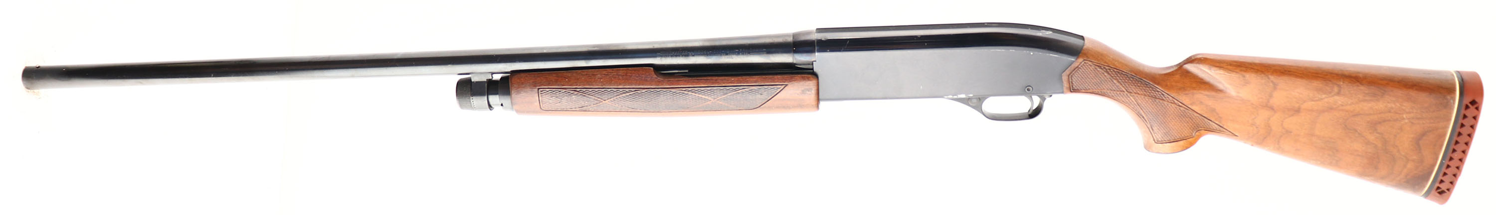 Winchester, Model 1200, CAL: 12 GA, MFG: 1964-82, SN: L494792, Pump Action Shotgun, Full fixed choke, 28'' barrel with no vent. The Winchester Model 1200 was introduced in 1964 as a low-cost replacement for the venerable Model 12 & was just the second shotgun to utilize a rotary bolt, with four locking lugs secured within the barrel extension. It was Winchester's first shotgun to incorporate the company's patented WinChoke system (but this one does not have the WinChoke), The original checkered & capped pistol grip wood stocks are very good, however there are numerous contusions & scrapes to bottom of butt stock only. The original metal blue/black finishes on the barrel & alloy receiver rate 90% overall, Bore is very good. Single front bead. Buttstock carries a Winchester vent buttpad. FFL Req. - Value: 200 to 400