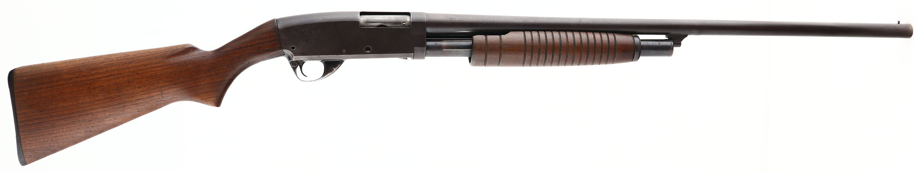 Stevens (Savage), Model 77A, CAL: 12 GA, MFG: 1949, SN: none, Pump Action Shotgun, Choke: Mod, 2 3/4'' chamber, 28'' barrel. The pistol grip wood stocks are original with nicks & dings. The metal blue finish rates 70% on barrel, 80% on receiver & 60% on tube, Bore is very good. Stock carries a black butt plate, 14 1/8'' LOP, the pump lock does not always engage when the pump is pushed forward & cocked, & will pump back without pressing the pump release button, on top of missing a screw on the right side of the receiver, will need to see a gunsmith. This gun with its problems & missing parts is being sold AS IS with NO RETURNS ACCEPTED. FFL Req. - Value: 100 to 200