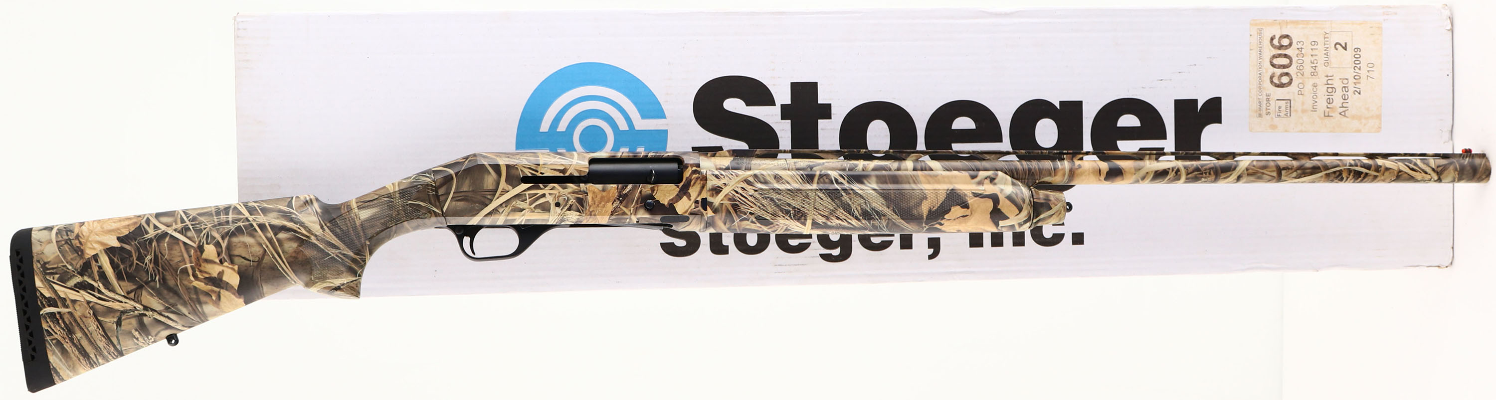 BOXED, Stoeger, Model 2000, CAL; 12GA, MFG: Modern, SN: 817322, Semi Auto Shotgun, 2 3/4'' & 3'', Screw-in choke, 28'' barrel. The checkered synthetic stocks are excellent, with minor handling marks to the Advantage Max4 camo finish. The camo finish on the barrel & receiver rates 99%+. Bore is excellent. The ventilated rib holds a red fiber optic bead front sight. Ventilated black rubber recoil pad. Comes in factory box. LOP: 14 1/2''. FFL Req. - Value: 350 to 500