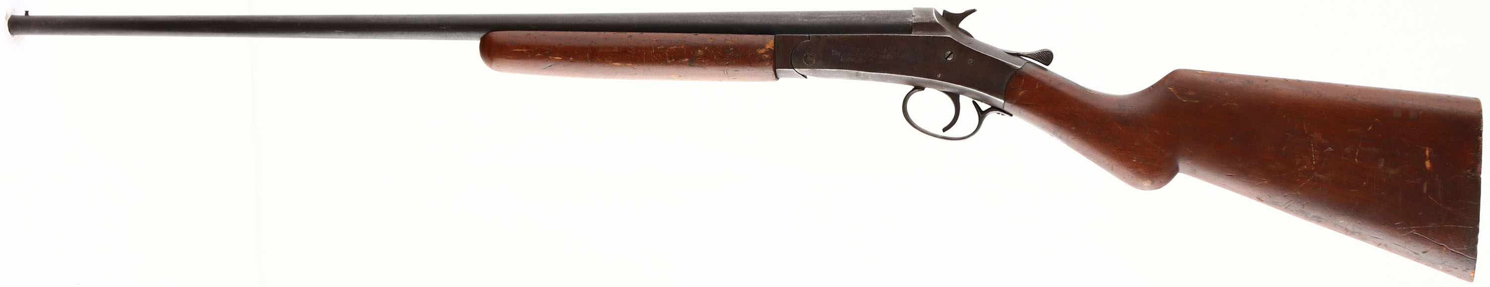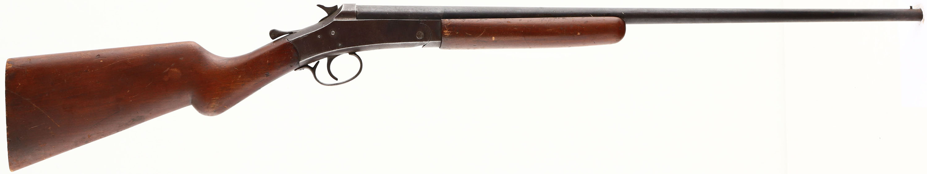Crescent Firearms Co., Victor Special, CAL: .410, MFG: N/A, Sn: 807036, Break Action Single Shot Shotgun, 26'' barrel. The round knob wood stocks are good & solid. There are cracks coming off both corners of the upper & lower tangs, along with dings, scratches & scrapes. The metal blue finish has fully worn to metal gray & toned to a brown patina. Bore is excellent & bright. Front bead sight. Missing buttplate. FFL or C&R Req. - Value: 100 to 200