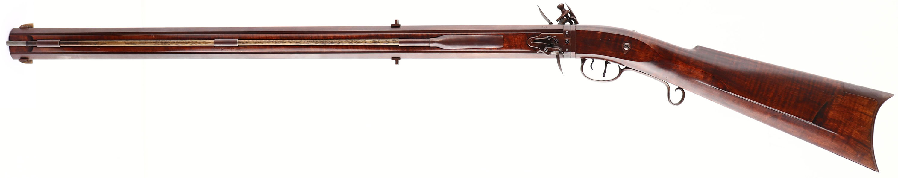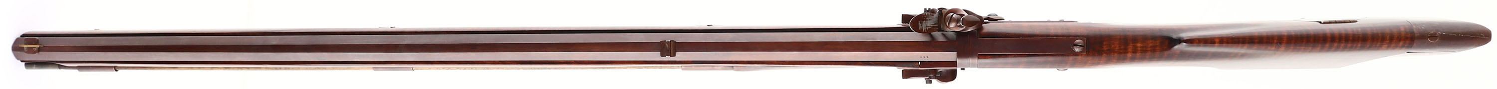 L. Day, Revolving Rifle, CAL: 50, MFG: 1970's, SN: 411, Flintlock Muzzleloader, 32'' octagon barrels. A well-made modern reproduction. Marked ''L.DAY'' on the right side plate. The straight grip wood stock is excellent, with minor handling marks. Integrated patch or bullet holder in right side of stock. All metal components have been nicely browned. One bore rate is excellent, the other one rates good, due to darkness & consistent roughness. Fixed rear sights & blade front sight on both barrels. Crescent metal buttplate. Mechanically sound. Overall, a nice & unique flintlock rifle. Blackpowder, No FFL Req. - Value: 1000 to 2000
