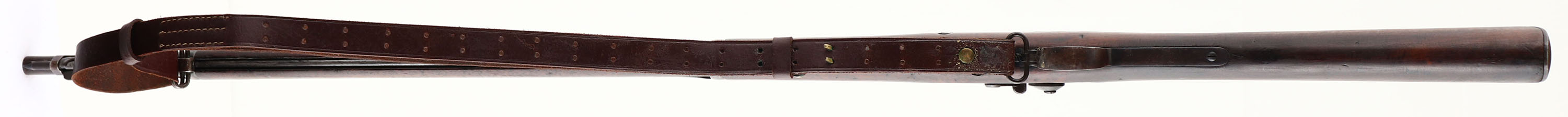 Springfield Armory, Model: 1888, Cal: .45-70, MFG: 1892, S/N: 558006, Single Shot trapdoor rifle, 33 5/8'' barrel. The straight wrist walnut stock is very good with nicks, dings, scratches, dents, & wear from use/age. Stock has darkened from age & added oils over the years. Stock does not appear to have been sanded. The inspectors cartouche on the left side of the stock, & the Circle ''P'' in the belly of the stock are very faint & worn down, the inspector stamp more than the circle ''P'' stamp, but both are still visible. The top of the wrist is marked ''542'', ''M'', which could be a rack number or unit number. The metal has toned to a brown patina with areas of gun metal gray & scratches. The underside of the breech block has very faint remnants of case hardening. The lock plate has been buffed & cold blue has been added with two spots of gun metal gray showing. The barrel is marked ''V'', over ''P'', over a eagles head, ''P'', ''A''. The top of the breech block is marked ''U.S.'', ''MODEL'', ''1884''. The rear of the receiver is marked with the S/N. the lock plate is marked with a American eagle holding wheat, & ''U.S.'', ''SPRINGFIELD''. Both barrel bands are marked with a ''U'' on the right side. The bore is very good. Its bright with areas of roughness/very light pitting. The barrel holds a replaced blade front sight with a Buffington rear sight. The stock carries a steel trapdoor buttplate that's toned to a brown patina. No cleaning rods inside the trapdoor. The bottom of the buttplate is marked ''47'', while the upper tang is marked ''US'', ''T'', ''4'', which again is either a rack number or a unit number. The rifle has both sling loops & stacking swivel. Rifle comes with a after market leather & brass sling. Rifle has its unique rod Bayonet. A excellent example of a used 1888 Springfield with some extra interesting markings. Antique, No FFL Req - Value: 800 to 1600