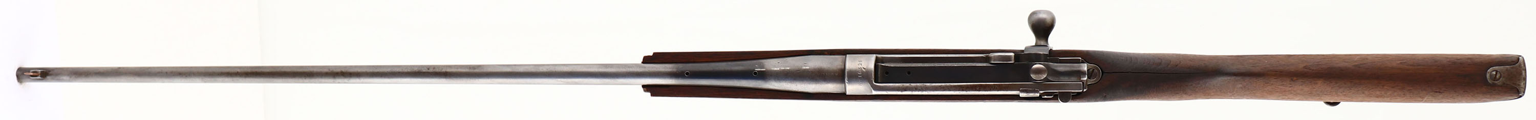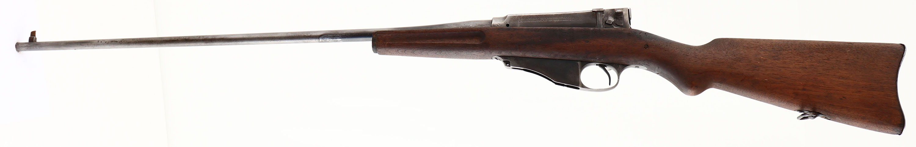 Winchester, Model: M1895 Lee-Navy Sporting Rifle, Cal: 6mm Lee-Navy, MFG: 1897, S/N: 10636, Straight Pull bolt action rifle, 28'' barrel. The semi-pistol grip, cut down stock is good with various nicks, dings, dents, scratches, & wear from use/age. There is a 3 1/4'' crack on the top of the wrist that emanates from the rear of the receiver. The metal finish has mostly worn to a gun metal gray with areas of thinned blue & brown patina. The left side of the receiver is marked ''MANUFACTURED BY THE WINCHESTER REPEATING ARMS CO.'', ''NEW HAVEN.CONN.U.S.A.PAT.OCT.10.93.JAN.30.94.OCT.8.95.JULY 5.98''. The top front of the receiver is marked ''NO'' & the S/N. the top of the barrel & receiver is stamped ''A NOVAK'' multiple times. The bore is very good. Its bright with strong rifling & some intermitting light roughness. The barrel holds a brass blade front sight with no rear sight. The stock carries a steel trapdoor buttplate that's worn to a gun metal gray with brown patina, the trapdoor is missing. Rifle has one rear sling mount. By 1894, the US navy was wanting to adopt a brand new, modern smokeless powder, small bore rifle to keep up with other world navy powers. The navy would go on to develop the 6mm smokeless, semi-rimless cartridge, & would go on to set of trials for the rifle. On august 1st, 1894, the navy would go on to test many different magazine rifles that were submitted to the trial. After a few more trials, in 1895, the straight pull rifle designed by James Paris Lee (who also designed the action in the Lee-Enfield rifle) was selected as the winner. Making it the M1895 Lee-Navy. Winchester was given the contract to produce this new rifle, & 10,000 were ordered by the navy in the first contract in January 1896. these rifles would not be completed until 1897 because of manufacturing delays. Another 5000 would be made which would be a mix of military replacement rifles & civilian market guns up until 1902, & would be sold on the civilian market until 1916. there was a second contract for the navy for 5000 more rifles in 1898, these rifles were assigned the S/N block 15001 to 20000. Antique No FFL Req. - Value: 800 to 2000