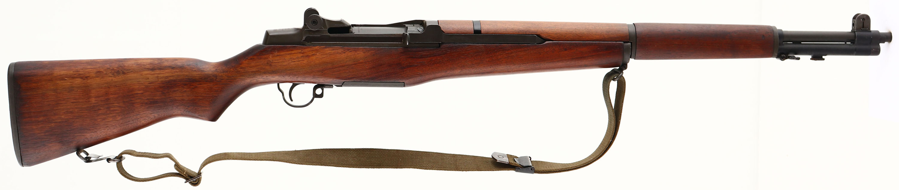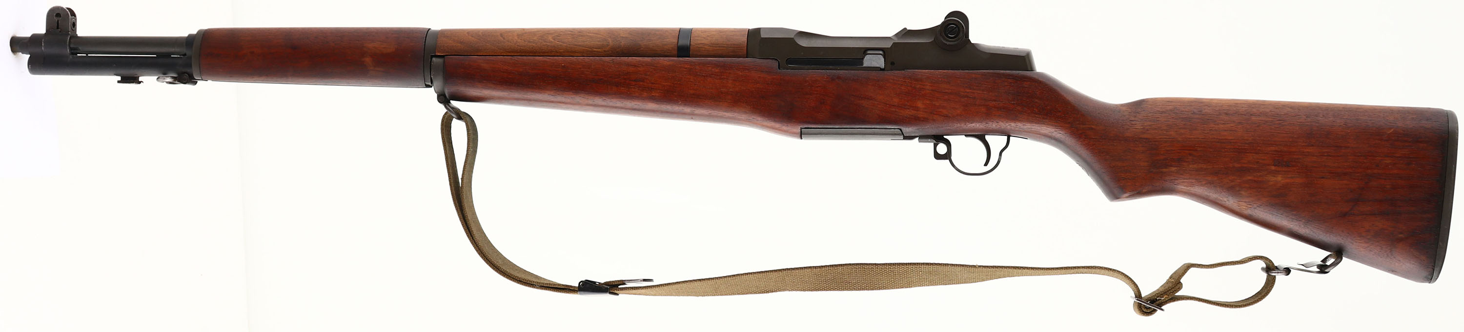 Springfield Armory, Model: M1 Garand, Cal: .30-06, MFG: 1942, S/N: 644226, Semi-auto Rifle, 24'' barrel. The semi-pistol grip walnut stock is excellent with almost no wear. Left side of stock above the trigger is marked with the US eagle below three stars in a box. Left cheek is marked ''RIA'', bottom of wrist is marked with two circle ''P'' firing proof marks, one is slightly worn/faded one is deep & clear. The parkerized metal finish rates 95% overall with light wear. Rear of receiver is marked ''U.S. RIFLE'', ''SPRINGFIELD'', ''ARMORY'', & S/N. right side of barrel is marked ''P'', ''S-A-10-50'', ''M''. Bore is excellent. It is bright & mirror like. Barrel holds a wide blade front sight with protective ears. & the rear of receiver holds a fully adjustable aperture rear sight. Stock carries a steel checkered trapdoor buttplate, with a oil bottle, pull through, & bore brush combo cleaning kit inside. Rifle has bottom sling loops with a forward stacking loop. Rifle comes with a period correct green canvas sling. This is a excellent example of the classic American battle rifle. FFL or C&R Req. - Value: 1500 to 3000
