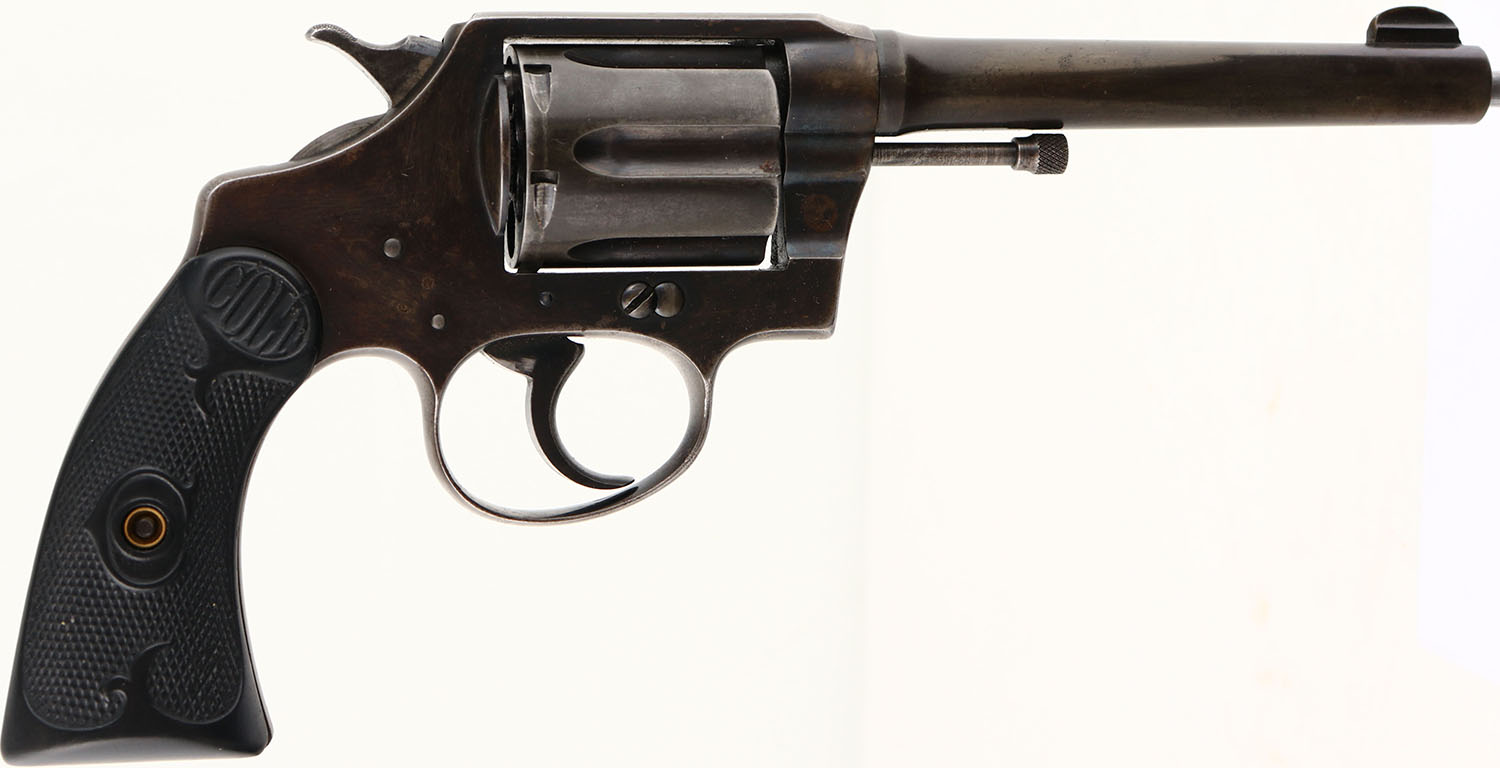 Colt, Police Positive Special - 1st Issue, CAL: 32-20 WCF, MFG: 1919, SN: 183866, Double Action Revolver, 5'' barrel. The reproduction Colt checkered plastic grips are excellent. The metal blue finish on the barrel has worn to a mix of remaining blue, metal gray & brown patina. The frame & trigger guard rates 40%. Bore is good & bright, with consistent roughness. Integral U-Notch rear sight & blade front sight. FFL or C&R Req. - Value: 150 to 300