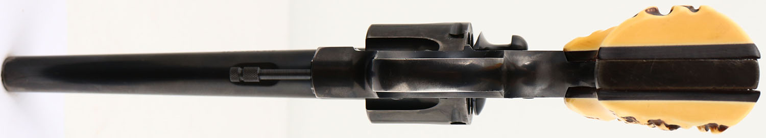 Colt, Official Police - Post-War, CAL: 38 SPL, MFG: 1958, SN: 862684, Double Action Revolver, 6'' barrel. The Colt logo medallion plastic stag grips are excellent. They have toned butterscotch. The metal blue finish rates 85% on the barrel, with holster wear/ The frame rates 85%, with concentrated loss to the back strap, top strap & trigger guard. The cylinder rates 70%, with areas worn to metal gray with a thin brown patina. Bore is excellent. Integral square notch rear sight & serrated blade front sight. FFL or C&R Req. - Value: 350 to 600