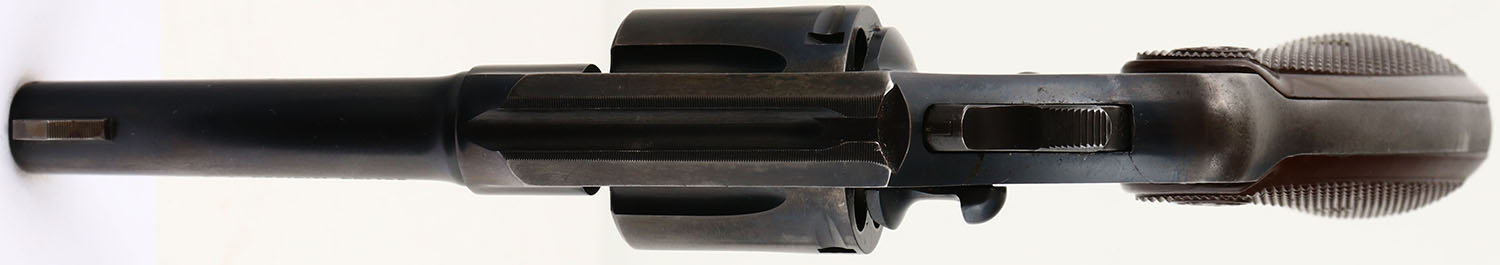 Colt, Official Police - Post-War, CAL: 38 SPL, MFG: 1960, SN: 873102, Double Action Revolver, 4'' barrel. The Colt logo medallion checkered plastic grips are excellent, with some minor dings to the bottom edge of both grips. The original metal blue finish on the barrel rates 85% with holster wear. The frame rates 85%, with minor spotting/speckling & areas worn to metal gray on the top strap/edges. The trigger guard rates 60%, with concentrated loss to the back strap. Bore is excellent. Integral square notch rear sight & serrated blade front sight. FFL or C&R Req. - Value: 350 to 600
