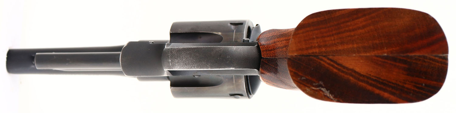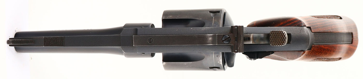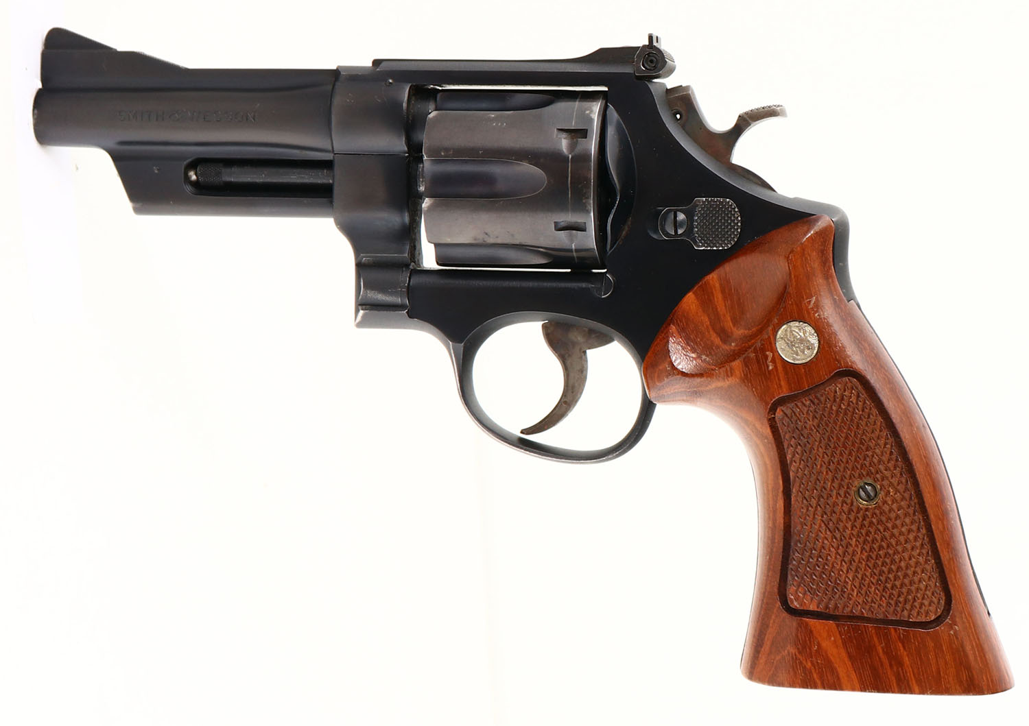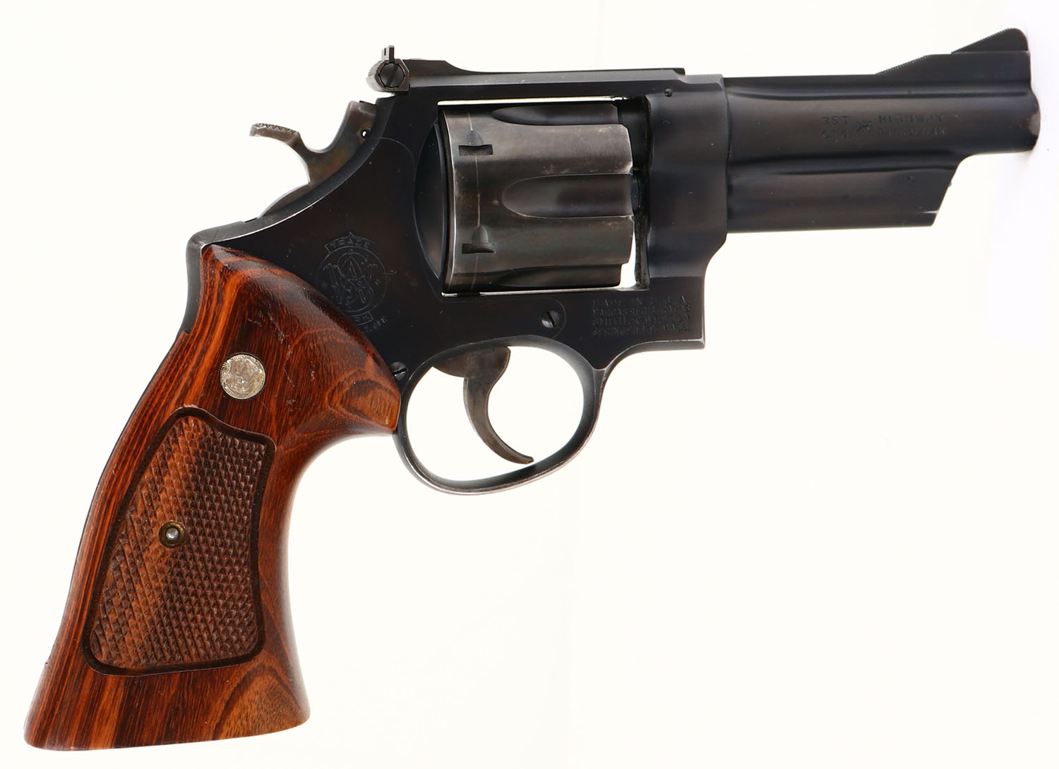 Smith & Wesson, Model 28-2 - Highway Patrolman, CAL: 357 MAG, MFG: 1967, SN: S289930, Double Action Revolver, 4'' barrel. The S&W logo medallion checkered wood grips are excellent. The original metal blue finish rates 97% on the barrel & 98% on the frame. The case-hardened trigger & hammer retain faded, but visible case-colors. Bore is excellent, with a minor area of roughness near the chamber. Adjustable rear sight & ramp elevated serrated blade front sight. FFL or C&R Req. - Value: 400 to 800