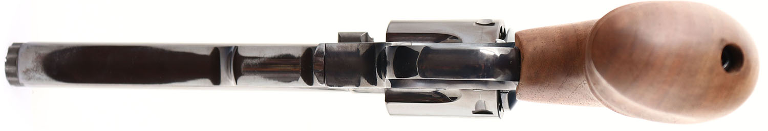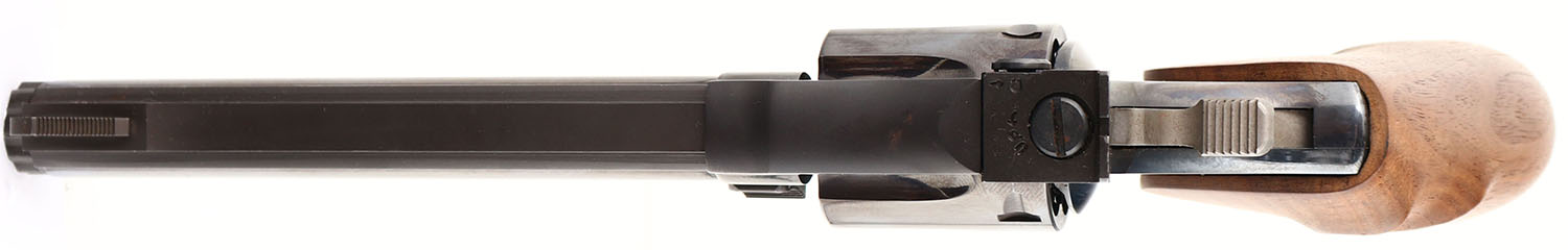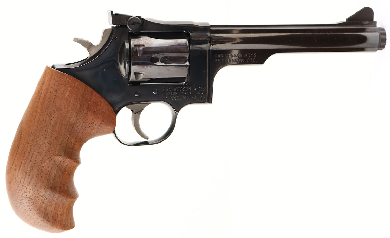 CASED, Dan Wesson Arms, Model W12 - 4 Barrel Set, CAL: 357 MAG, MFG: Modern, SN: 511, Double Action Revolver, 6'' barrel. The smooth target style grips are mint. The metal blue finish rates 99% on the barrel, toned to a chocolate patina. 97% coverage on the frame, with areas thinning & appearing hazy. The cylinder has toned to a plum patina. Bore is excellent. Adjustable rear sight & serrated blade front sight. This is a full set that includes related paperwork, (3) extra barrels (2) 4'' & (1) 2 1/2'', tool & an extra set of grips. All extra parts are excellent, in original wrapping paper. Comes in factory brown hard case, with green foam interior. Foam interior has cut outs for all extra parts. A high condition full set. FFL Req. - Value: 800 to 1600