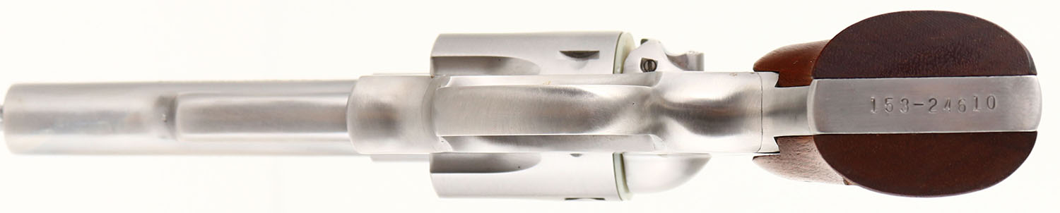 NEW BOXED, Ruger, Security-Six, CAL 357 MAG, MFG: 1977, SN: 153-24610, Double Action Revolver, 4'' barrel. The Ruger logo medallion checkered woos grips are mint. The stainless steel finish is excellent overall. Bore is mint. Adjustable rear sight & elevated serrated blade front sight. Comes in factory box, with related paperwork, original packaging & factory cardboard sleeve with end label. FFL Req. - Value: 500 to 650