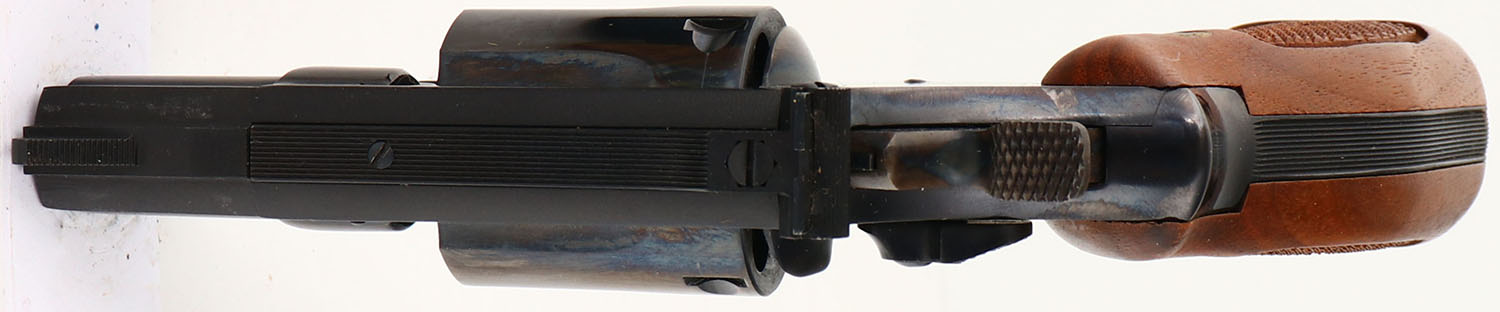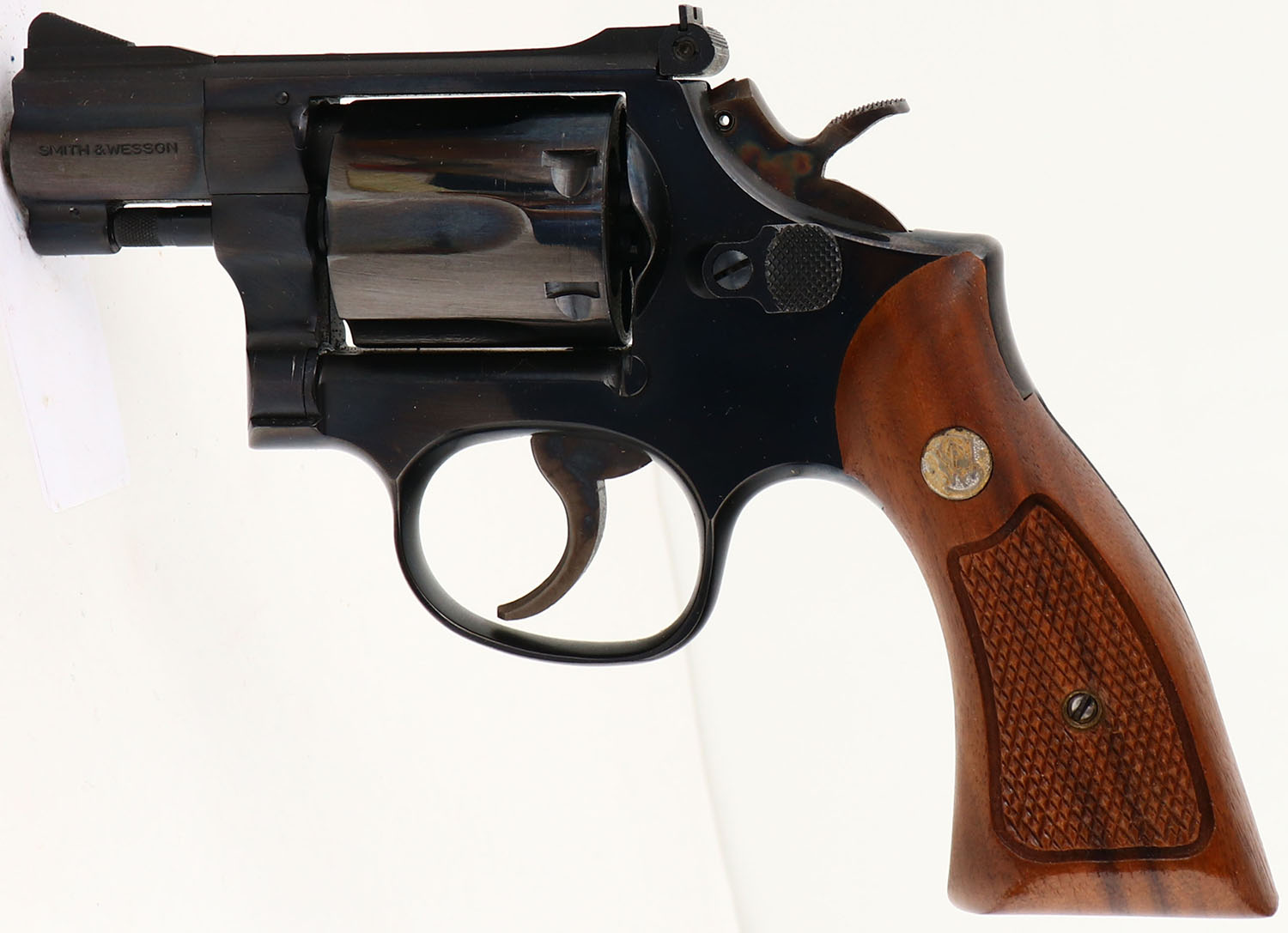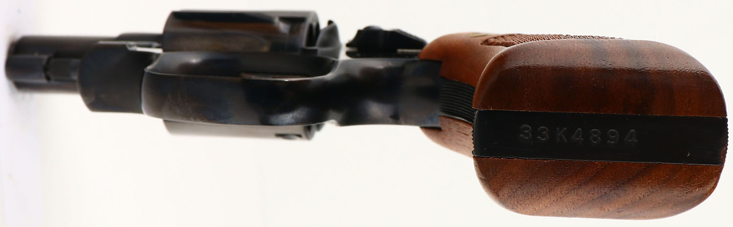 BOXED, Smith & Wesson, Model 15-4, CAL: 38 S&W SPL, MFG: 1978, SN: 33K4894, Double Action Revolver, 2'' barrel. The S&W logo medallion checkered wood grips are excellent. The original metal blue finish rates 99%+ overall. The case-hardened trigger & hammer retain excellent case-colors. Bore is mint. Adjustable rear sight & serrated blade front sight. Comes in SN matching box, with related paperwork, cleaning brush/rod & original packaging. FFL or C&R Req. - Value: 550 to 750