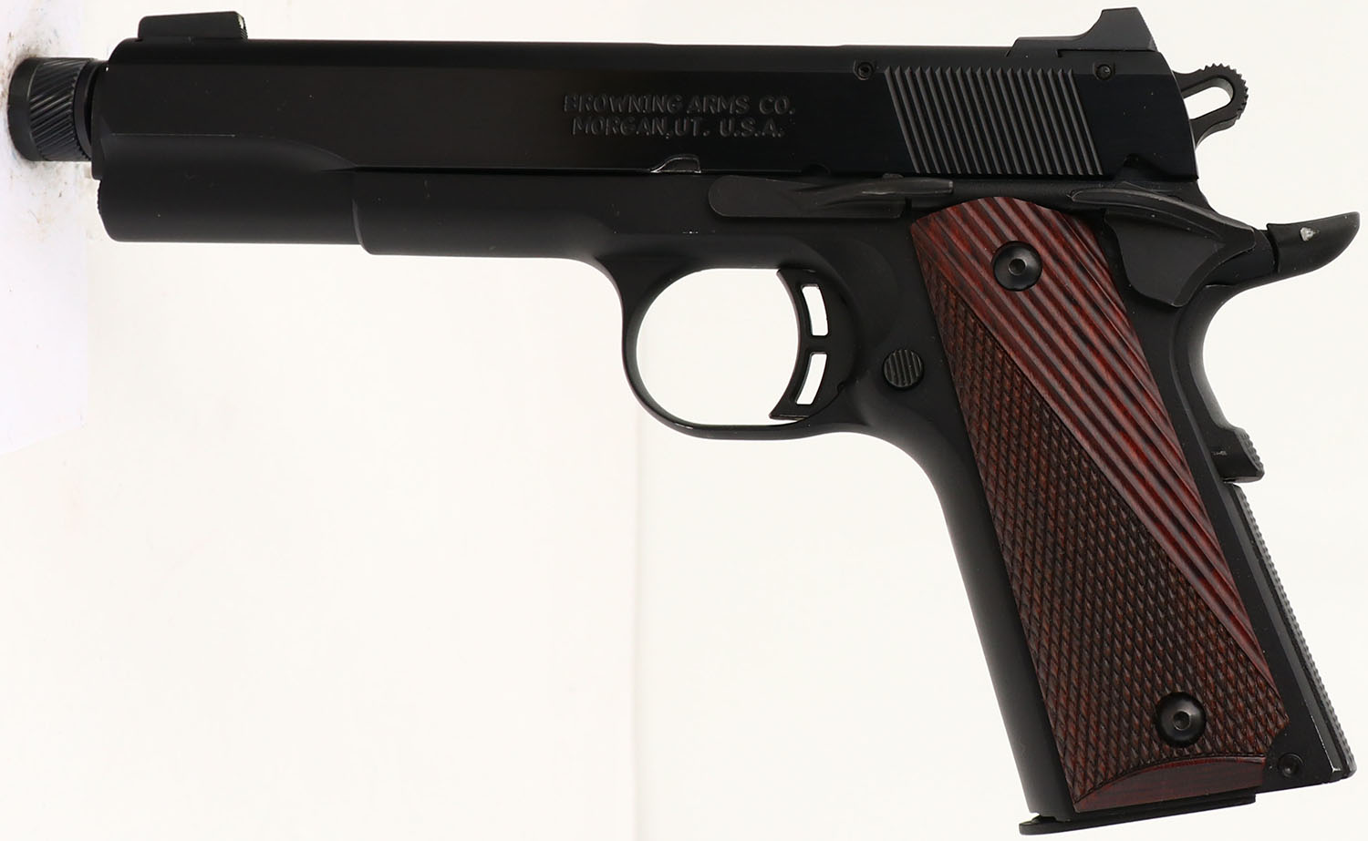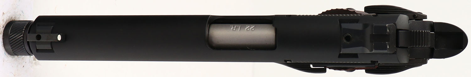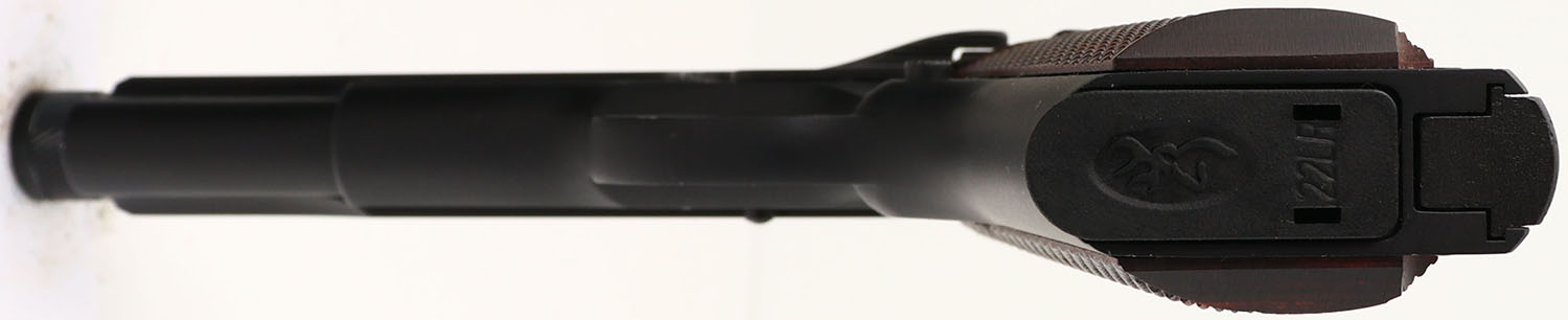 CASED, Browning, 1911/22 Black Label, CAL: .22LR, MFG: Modern, SN: 51EZR01681, Semi Auto Pistol, 4 3/4'' barrel. The checkered wood grips are excellent. The two-tone matte black finish rates 99% overall. Bore is excellent. Factory contrast sights. Threaded barrel. Comes in factory hard case, with test fire cartridge, lock/key. FFL Req. - Value: 400 to 700