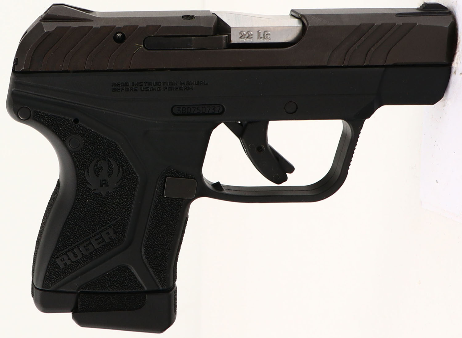 Ruger, LCP II, CAL: .22LR, MFG: Modern, SN: 380750737, Semi Auto Pistol, 2 3/4'' barrel. The Ruger textured polymer grip frame is excellent. The blued finish on the slide has 99% coverage, but is beginning to tone to a brown patina. Bore is excellent. Factory square notch rear sight & serrated blade front sight. FFL Req. - Value: 250 to 400