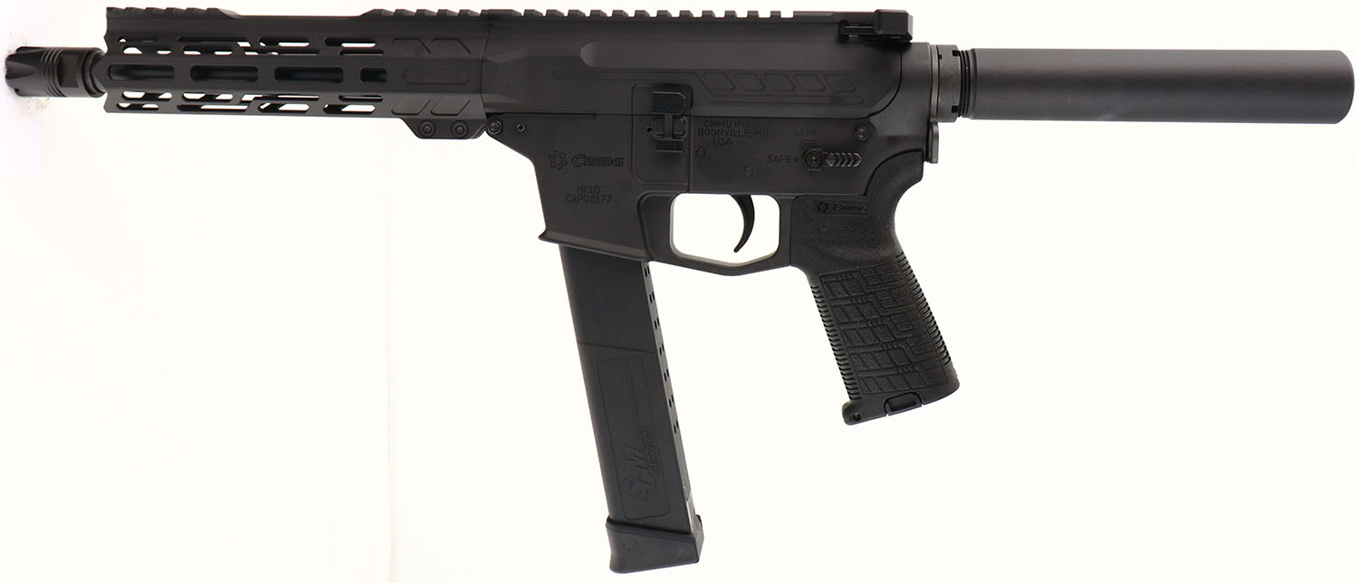 BOXED, CMMG, MK10 Banshee, CAL: 10mm, MFG: Modern, SN: CAP08177, Semi Auto Pistol, 8'' barrel. The textured polymer grip is excellent. The matte black finish on the upper/lower rates 100% overall. Bore is excellent. No sights. Fully integral upper picatinny rail for optics. Comes in factory box, with related paperwork, buffer tube weight & magazine. FFL Req. - Value: 1200 to 1500