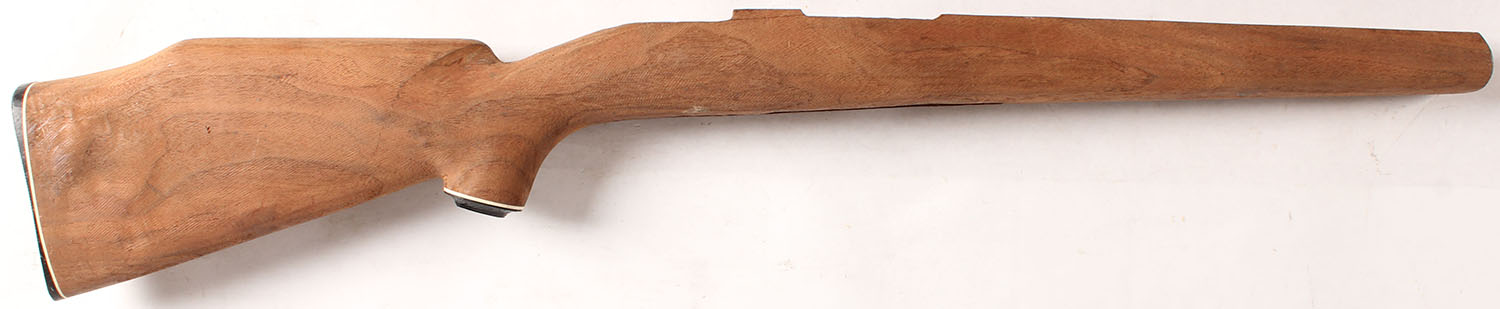 Bishop raw blank for unknown rifle, capped pistol grip, & cheeked Monte Carlo wood stock, Stock is unfinished & will need final fit, sanding & finish Has Bishop grooved plastic buttplate. Grade: Excellent - Value: 10 to 80