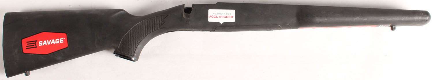 Savage, bolt action synthetic take-off stock, Savage logo capped pistol grip, sling studs. Retail stickers still on stock. Missing buttpad. Grade: Excellent. - Value: 10 to 30