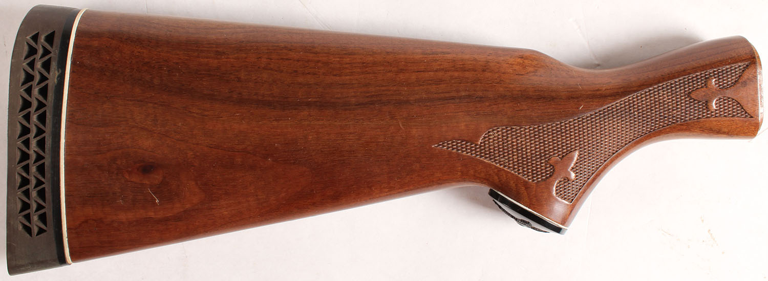 Remington 870, shotgun buttstock, New old stock. Has rubber Remington recoil pad & has a through bolt inside. Minor rubs Grade: Excellent ++ - Value: 20 to 80