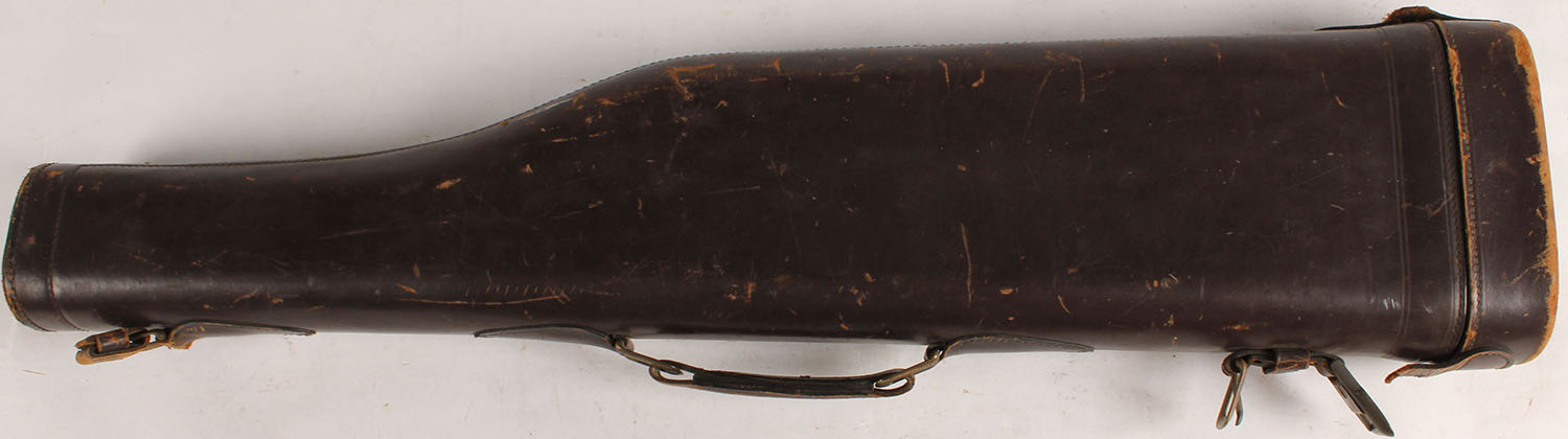 | Leather mutton leg take-down shotgun case, 33'' long. Lid rete...
