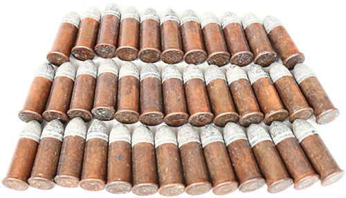 Lot of 37, .38 cal rimfire carts., some oxidation to bullets, no H/s. Grade: Very Good + - Value: 10 to 50