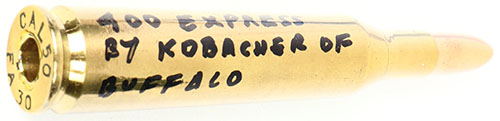 .40 Express. HS:''CAL 50 FA 30''Converted 50 cal MG round by Kobacher of Buffalo. PT CJ FMJ. No Primer. Grade: Excellent ++ - Value: 20 to 40