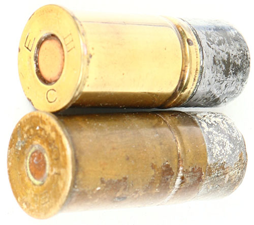 Lot of 2. .455 Webley Mark III Manstopers. (1) HS:''E C III''. (1) HS:''ELEY LONDON''. Both with large hollowpoint Lead projectiles. Grade: Excellent - Value: 20 to 40