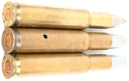 Lot of 3. .30-30 Remington. HS:''UMC 30-30 REM''. (1) Softnose. (1) Tinned PT FMJ. (1) Dummy w/ RN CN FMJ. Grade: Excellent - Value: 30 to 60