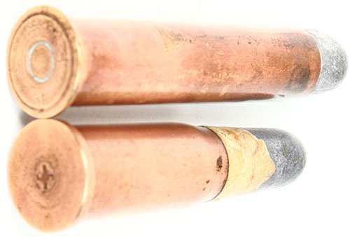 Lot of 2, (1) Swiss Vetterli 10.4 x 38R M69/81, HS:''Swiss Cross with two dots'', RN PP Lead. (1) 45-70 Govt. HS:''C 86 F 4'', RN Lead (carbine load).. Grade: Excellent - Value: 20 to 40