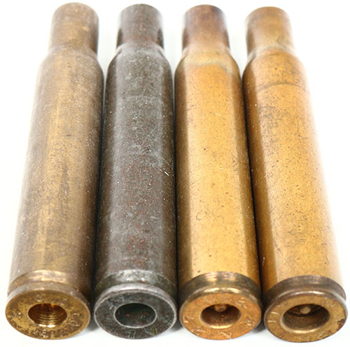 Lot of 4. 30-06 Springfield. All unprimed empty cases. (1)HS:''FAL 43'', High pressure test. (1)HS:''G. C. Co. 16 8'', Non contract samples from Graphite Cartridge Co. (1) HS:''FA 26 B11'', Berdan primed T1-E1. (1) HS:''FA 27 B30'', Berdan primed T1-E2 . Grade: Very Good + - Value: 40 to 80