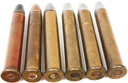 Lot of 6. 38-55. HS:''S.A. Co. 38-55 H.P.'', FN Tinned SP by Winchester. Grade: Excellent - Value: 20 to 40